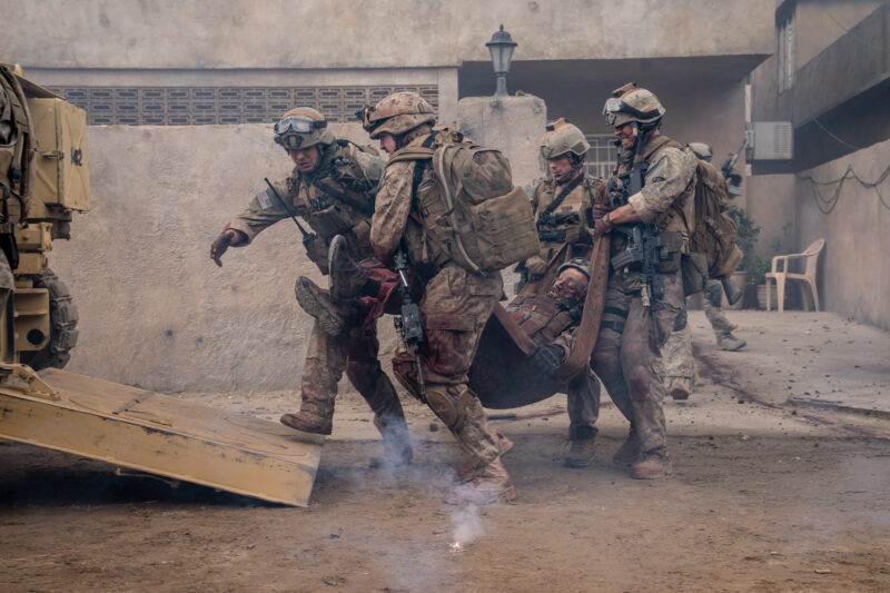 アレックス・ガーランド:『炎628』は戦争映画の中で5本の指に入る傑作だと思います。そしてその作品は『ウォーフェア』にも影響を与えています。というのも『炎628』の制作者や俳優たち——特に年配の俳優です——は、映画で描かれた出来事を実際に体験し、記憶していた人々でした。そしてそれが民間人の視点から描かれている。ある意味で幻想的な瞬間もある映画ですが、凄まじく誠実につくられ、驚くほどに本物の質感を宿し、見事なまでに人々に真実を伝えている作品です。『ブラックホーク・ダウン』も素晴らしい映画ですが、『炎628』が持つような誠実さには欠けていると思います。また『ウォーフェア』は、素晴らしいモノクロの戦争映画である『突撃』(1957)にも大きな影響を受けました。スタンリー・キューブリック監督の初期作品で、カース・ダグラスが出演しているのですが、この作品も真実味を宿していると思います。